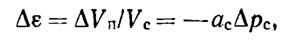Упругость горных пород. Размеры пор зависят от укладки минеральных зерен, а размеры трещин - от их раскрытости. Под влиянием внешней нагрузки и с ростом глубины залегания пород скважность (пустотность) пород снижается главным образом за счет более плотной укладки минеральных зерен и уменьшения раскрытие трещин, т. е. сокращения объема пустотности, и в меньшей степени под влиянием упругого сжатия, вязко-пластических и других деформаций скелета породы. Пески, галечники, аргиллиты, песчаники и карбонатные породы обычно рассматриваются как упругодеформируемое (или линейно деформируемое) тело, способное после снятия нагрузки восстанавливать первоначальную структуру порово-трещинного пространства. Глины и суглинки при небольших изменениях давления ΔРс на породу ведут себя как условно упругодеформируемое тело, а при значительных - в них проявляются пластические и другие деформации. Характер изменения пустотного пространства под влиянием эффективных давлений рс на скелет породы оценивается экспериментальной кривой зависимости ε=f(рс), которая называется компрессионной кривой. На рис. 2.1. показаны типовые кривые для упругодеформируемой и условно упругодеформируемой сред. Уклон кривых характеризует величину коэффициента сжимаемости ас. Часто пользуются показателем удельного сжатия (расширения) скелета породы βс. Минеральный скелет породы сжимается очень слабо, и для базальтов, кварцитов, аргиллитов, песчаников и известняков величина βс имеет порядок (0,8-5)10-11 Па-1, что на порядок меньше, чем для воды.