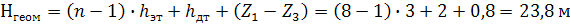 м); Z1, Z2 - соответственно отметки пола первого этажа и земли, м.