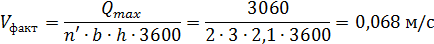 Приймаємо Vфак=0,068 м/с.