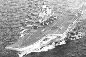 Тяжелый авианесущий крейсер "Адмирал Кузнецов": водоизмещение- 45 900 т; длина- 304,5 м; ширина - 72,3 м; скорость хода макс. - 30 узлов; дальность плавания- 3850 миль или 8500 миль; автономность - 45 суток; экипаж и летно технический состав- 1960 (200) + штаб 40 чел. и 626 чел.; макс. вмещает -14 вертолетов; вооружение - ударное, зенитное, противолодочное, радиоэлектронное.