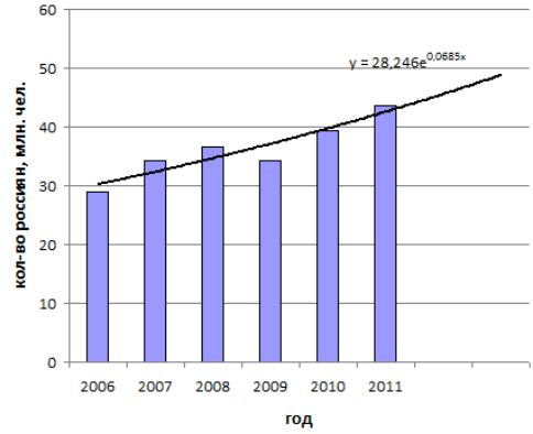 Рис. 2.3. Количество россиян, выехавших за границу в 2006–2011 гг. (млн чел.)