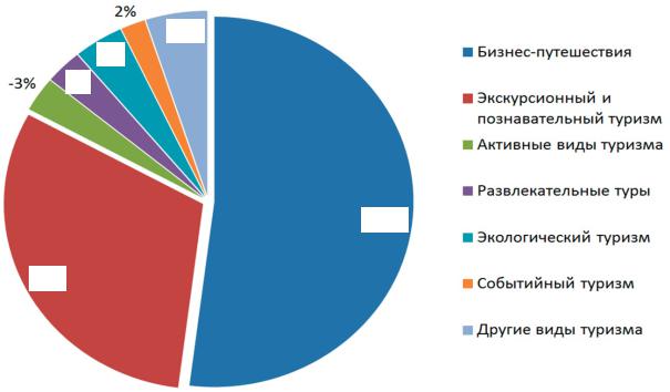 Сегодня быстрыми темпами происходит дифференциация туристского продукта по сегментам и нишам. Следует отметить, что не все из них активно развиваются в России. Тем не менее есть ряд видов туризма, которые растут быстрыми темпами и которые могут получить широкое развитие в индустрии туризма РФ. К таким видам туризма, на взгляд автора, относятся: бизнес-туры (бизнес-путешествия); экскурсионный и познавательный туризм; активные виды отдыха; развлекательные туры; экологический туризм; событийный туризм.