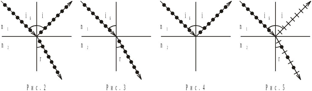 9. Плоскополяризованный луч света падает на границу раздела двух сред под углом Брюстера iБ (рис. 2 – 5). Указать его дальнейшее распространение.