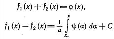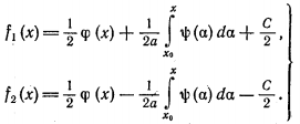Таким образом, мы определили функции f1 и f2 через заданные функции φ и ψ. Подставляя в (5) найденные значения получим: