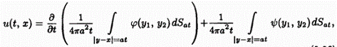 точке x: при n=2 зависит от начальных данных φ (y),???? (x) в круге {y: |y-x|![]()