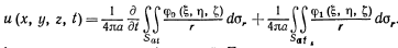 Где поверхностные интегралы берутся по сфере S: |x-y| = at.