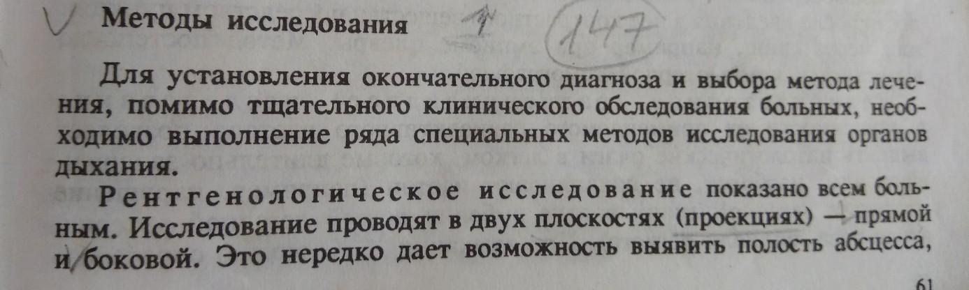 Этиология и патогенез. Специфических возбудителей легочного нагноения не существует. У больных обнаруживается как мономикробная (чаще), так и смешанная флора.