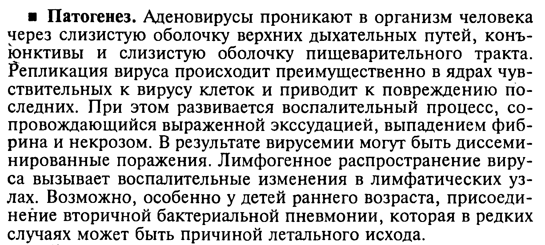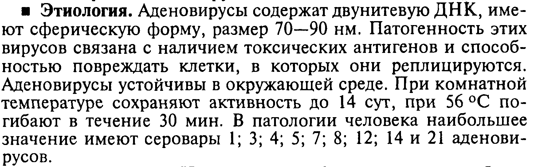 Аденовирусная инфекция — группа антропонозных острых вирусных заболеваний с поражением слизистых оболочек дыхательных путей, глаз, кишечника и лимфоидной ткани преимущественно у детей и лиц молодого возраста.