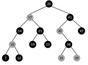 4.все пути, идущие от корня к любому фиктивному листу, содержат одинаковое количество черных узлов;