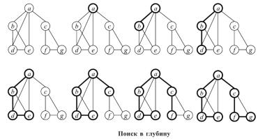 Поиск в глубину является обобщением метода обхода дерева в прямом порядке. Предположим, что есть ориентированный граф G, в котором первоначально все вершины