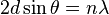 где d — межплоскостное расстояние, θ — угол скольжения (брэгговский угол), n — порядок дифракционного максимума, λ — длина волны.