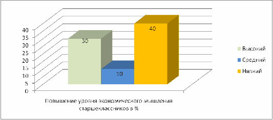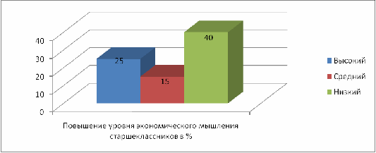 В частности, 7 старшеклассников имеют высокий уровень экономического мышления. Решения задач совершается школьниками путем поиска, анализа, синтеза и выработки самостоятельно алгоритма принятия решений и действий.