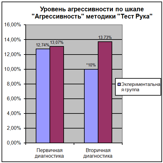Уровень агрессивности в экспериментальной группе при вторичной диагностике |