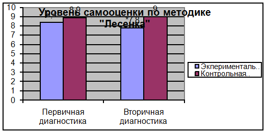 Показатель самооценки в экспериментальной группе при вторичной диагностике |