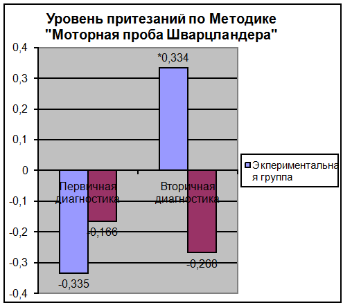 Уровень притязаний по методике «Моторная проба Шварцландера»