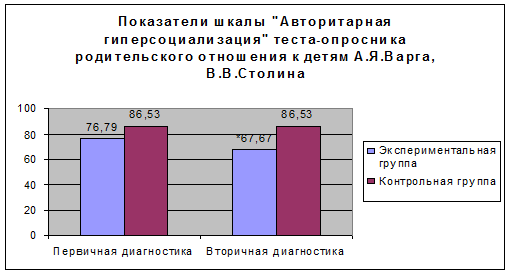 Показатель по шкале «Авторитарная гиперсоциализация», т-балл. |