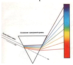 Рис. 1. Схема разложения пучка белого света в спектр с помощью стеклянной призмы.
