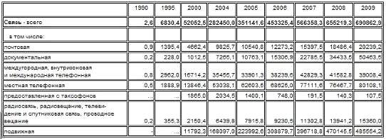 Таблица 2 «Объем услуг связи, оказанных населению» (в фактически действовавших ценах; миллионов рублей; до 2000 г. - млрд. руб.)