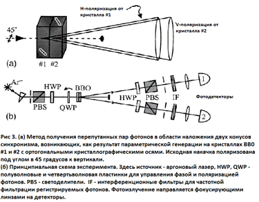 получения перепутанных состояний заключается в следующем (Рис 3). Два