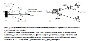 Возвращаясь к проблемам криптографии, стоит отметить, что большое значение в современных квантовых протоколах имеют источники перепутанных фотонных пар. Здесь мы рассмотрим два варианта применения процессов параметрической генерации [9] для получения перепутанных состояний.