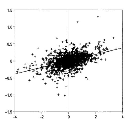 Экономисты Бринйолфcсон, Хитт, Лихтенберг провели исследования влияния IT и информационных систем на эффективность отдельных компаний и экономики в целом.Они нашли определенные закономерности между особенностями организации компании и отдачи от информационных систем, проанализировав данные 300 крупных компаний за 1988-1992 годы и выявили взаимосвязь междуIT и производительностью. Результаты представлены на графике 1.