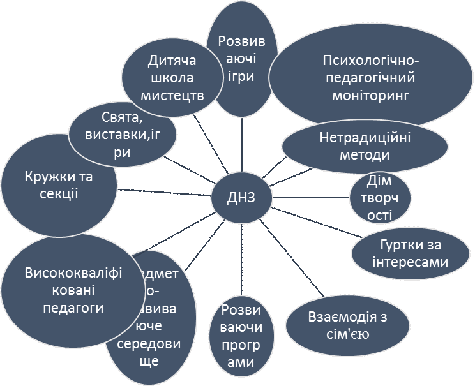 робота гуртків та секції, розвивають творчу спрямованість дитини;