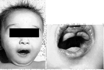 Сочетается врожденный гипотиреоз и с генетическими заболеваниями. Одним из наиболее частых и известных является синдром Pendred’а. Вструктуру синдрома входят нейросенсорная глухота, гипотиреоз и зоб. Ген находится на 7q22-q31 и кодирует белок пендрин, являющийся трансмембранным транспортером хлорида и йодида, экспрессированным в клетках щитовидной железы и внутреннего уха [107]. Мутации в тиреоидном факторе транскрипции 2 (TTF-2) являются причиной Bamforth-Lazarus синдрома, включающего дисгенезию ЩЖ, атрезию хоан, «волчью пасть» (рис. 6).