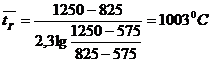 температуру в зоне кальцинации находим по формуле логарифмического усреденения
