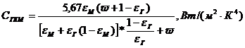 где εM - степень черноты материала, принимаемая равной 0,75.