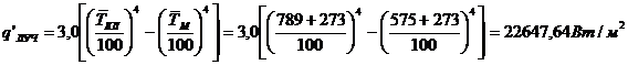 qл’ - лучистый тепловой поток от кладки к материалу при их непосредственном контакте, Вт/м2.