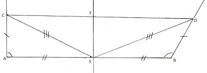 равны по катету и гипотенузе. Отсюда | |= | |. Так как точка лежит на перпендикуляре, проведенном через середину отрезка , она одинаково удалена от его концов: | |= | |. Прямоугольные треугольники иравны по катету и гипотенузе. Значит, | |= | |.