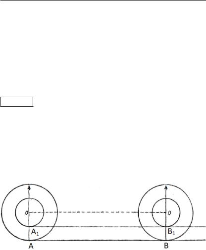 , точка 1 второго круга перейдет в положение 1. При этом оба круга совершат ровно один оборот. Но когда первый круг пройдет расстояние | |, второй преодолеет расстояние | 1 1|.