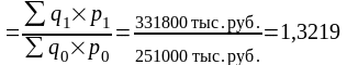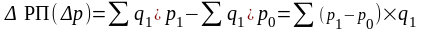 Влияние на динамику выручки (нетто) от продаж изменения объема продаж и изменения цен реализации можно определить на основе соответствующих индексов в виде разницы между их числителями и знаменателями. Изменение суммы выручки (нетто) от продаж за период:
