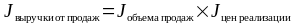 Для факторного анализа индекс выручки от продаж можно представить в виде произведения двух индексов: