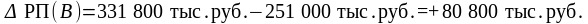 = 331 800 тыс.руб. – 251 000 тыс.руб. = +