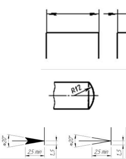 •Для размерных чисел применять простые дроби не допускается, за исключением размеров в дюймах.