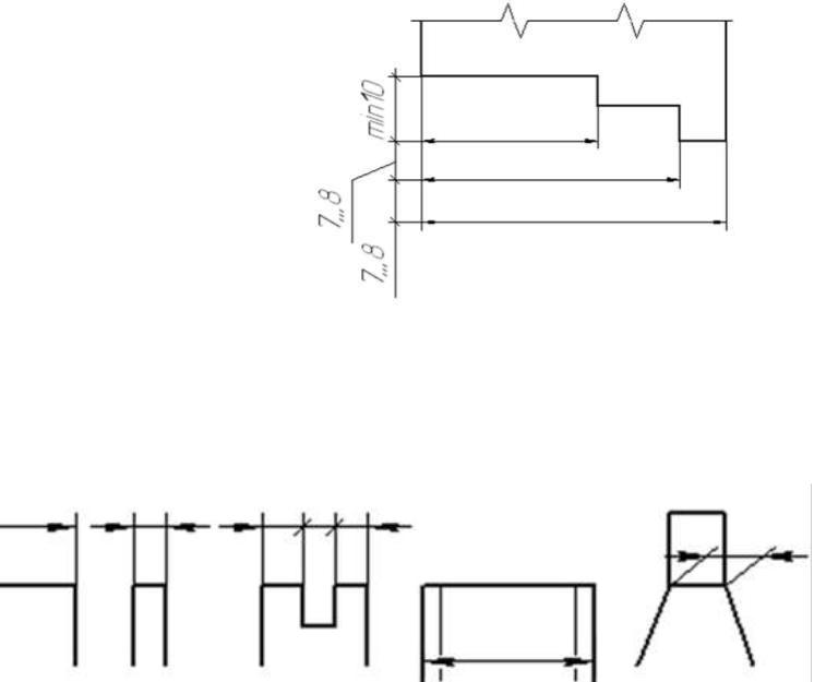 •Минимальные расстояния между размерной линией и линией контура - 10мм, а между параллельными размерными линиями - 7мм.