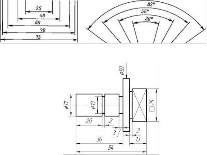 •При нанесении нескольких параллельных или концентричных размерных линий на небольшом расстоянии друг от друга размерные числа над ними рекомендуется располагать в шахматном порядке