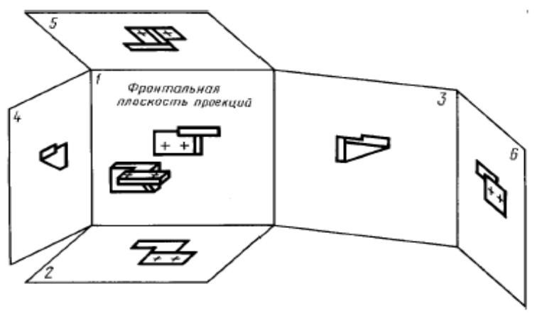 •За основные плоскости проекций принимают шесть граней куба.