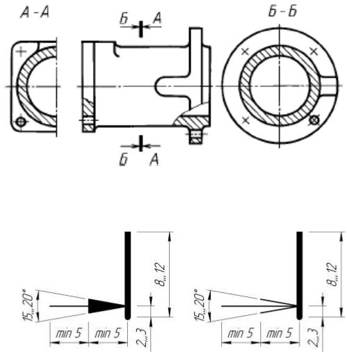 •Ближе к наружным концам штрихов разомкнутой линии ставят стрелки, указывающие направление взгляда. Стрелки должны наноситься на расстоянии 2…3мм от конца штриха. Размеры элементов стрелок показаны на рисунке.