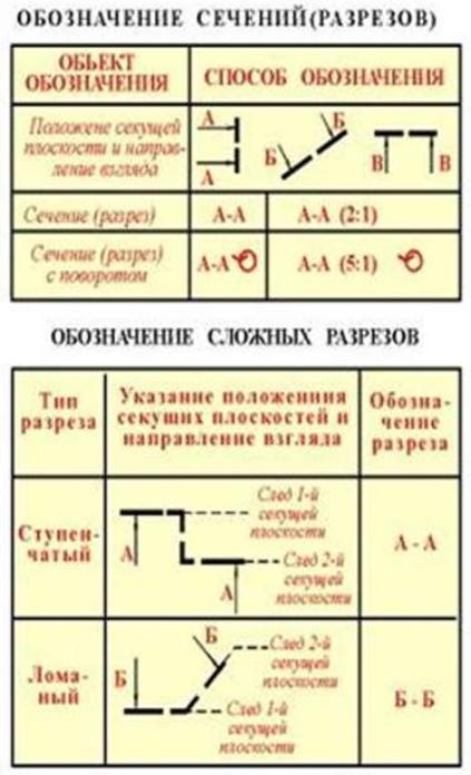 •Над изображением разреза помещают те же прописные буквы, разделенные знаком “тире”, например, «А-А».
