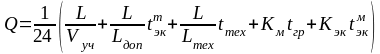 Приведенный коэффициента теплопередачи кпр (для данного вагона в данное время) определяется экспериментальным способом: вагон устанавливают в закрытое помещение с постоянной температурой, внутри вагона устанавливают нагревательный прибор, после доведения температуры в вагоне до постоянной, снимают показания затраченной мощности нагревательного прибора (Q) (нагревание длится в пределах 8 суток, способ точный, но длительный) и рассчитывают по формуле: