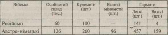 Співвідношення сил на дільниці Горлиці на травень 1915 р.