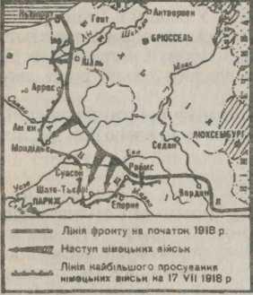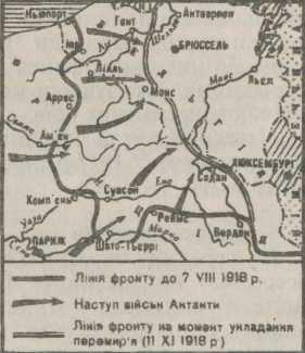8 серпня союзні війська під командуванням маршала Фоша розпочали наступ у районі Арраса і, прорвавши фронт, упродовж дня розгромили 16 ворожих дивізій. Це був "найчорніший день в історії німецької армії". У вересні війська Антанти перейшли у наступ на всьому фронті.