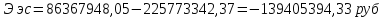 -Ущерб от подг. к стр-ву и послед. рекультив. земель Ээс=195074099,77 – 240604215,1 = -45530115,33руб