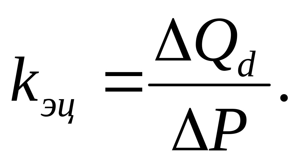 Эластичность спроса по цене, которая показывает, на сколько процентов изменится величина спроса на данный товар, если его цена изменится на 1%. Измеряется ценовая эластичность спроса с помощью коэффициента эластичности (k эц), который определяется отношением процентного изменения величины спроса на товар (ΔQd) к процентному изменению цены этого товара (ΔP):