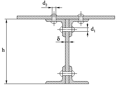 Рассмотрим типовое сечение силового шпангоута. Оно состоит из двух поясов, стенки и части обшивки корпуса летательного аппарата, работающего совместно со шпангоутом.
