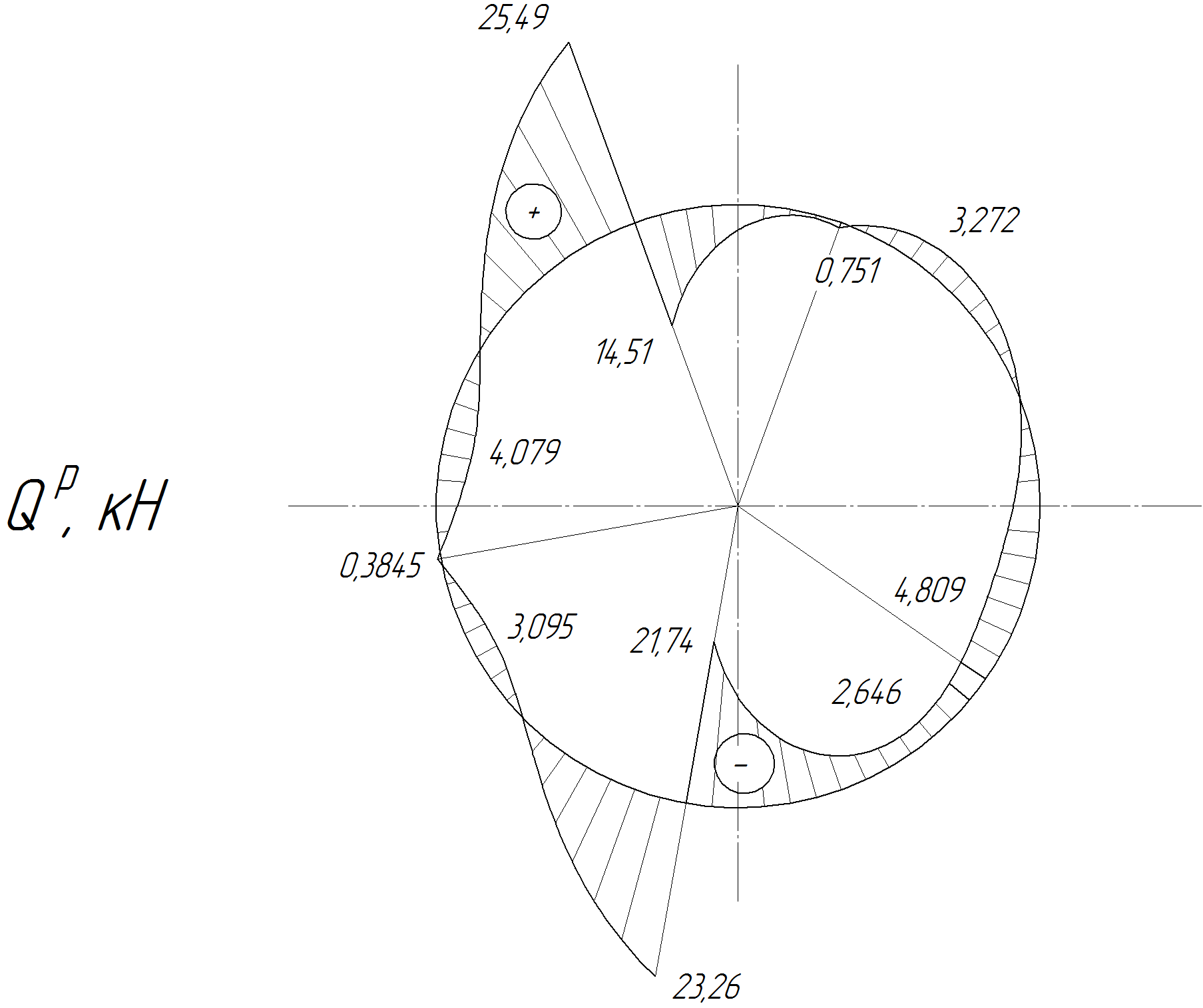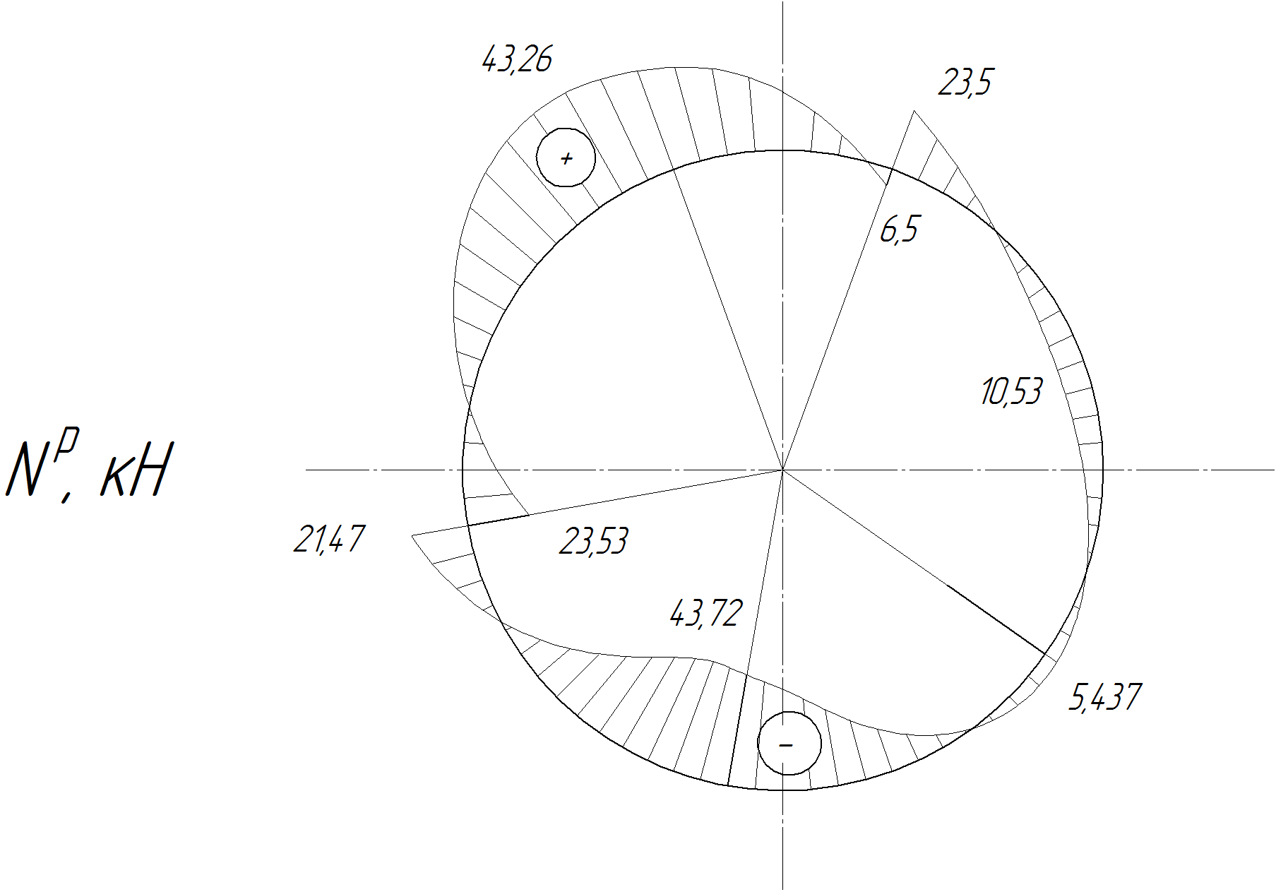 шпангоут, нагруженный двумя радиальными