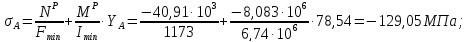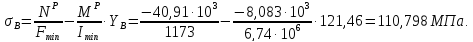 Из полученных значений выбираем наибольшее растягивающее и наибольшее сжимающее напряжения: