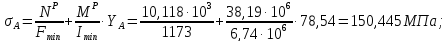 Напряжения в точках А и В: